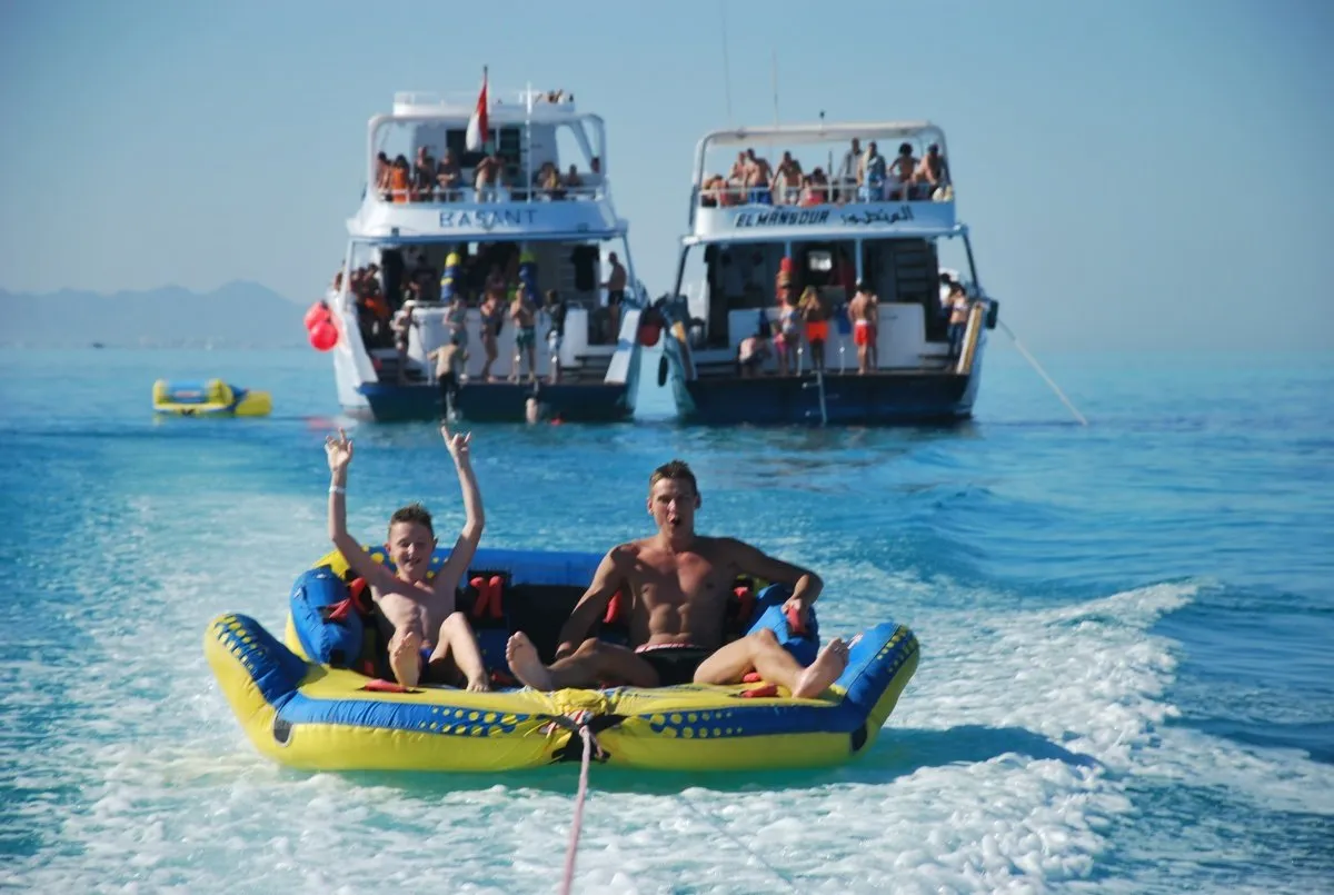 The Giftun Islands are a group of islands in the Red Sea off Hurghada. The largest island is the Giftun Island beach. The islands mainly consist of rock or sand, but are surrounded by huge coral gardens and provide shelter for countless fish species, turtles and large marine mammals. The biodiversity of the Red Sea is largely around the Giftun archipelago. Because Giftun Island is home to two endangered bird species, it was declared the first nature reserve near Hurghada in the mid-1990s. In addition to the famous dolphins, a whale shark was repeatedly spotted near the beautiful islands. The whale shark is the largest existing shark species, a fully grown one can weigh up to 20 tons. There are many famous diving and snorkeling spots around the island, which offer you a very special underwater experience. Of course having fun should not be neglected here either: various water sports can be enjoyed during the last snorkeling stop of the trip to the Giftun Island. These include the banana boat or the mattress boat - fun and adrenaline are guaranteed side effects for both! Pickup :08:00 Return :16:30What is included Hurghada Snorkeling: